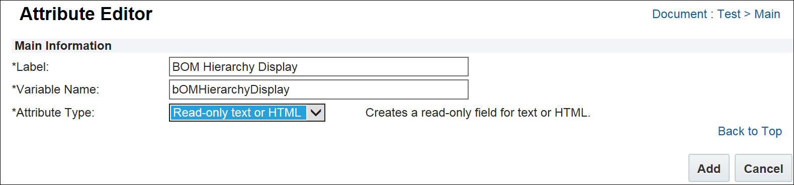 Change attribute labels from their default value, which is the attribute's name. In addition, a Display Type drop-down menu lets administrators choose the form input rendered for the user. For example: Text type attributes can be rendered as a Text Field or a Text Area. The Display Type options vary based on the attribute type. |