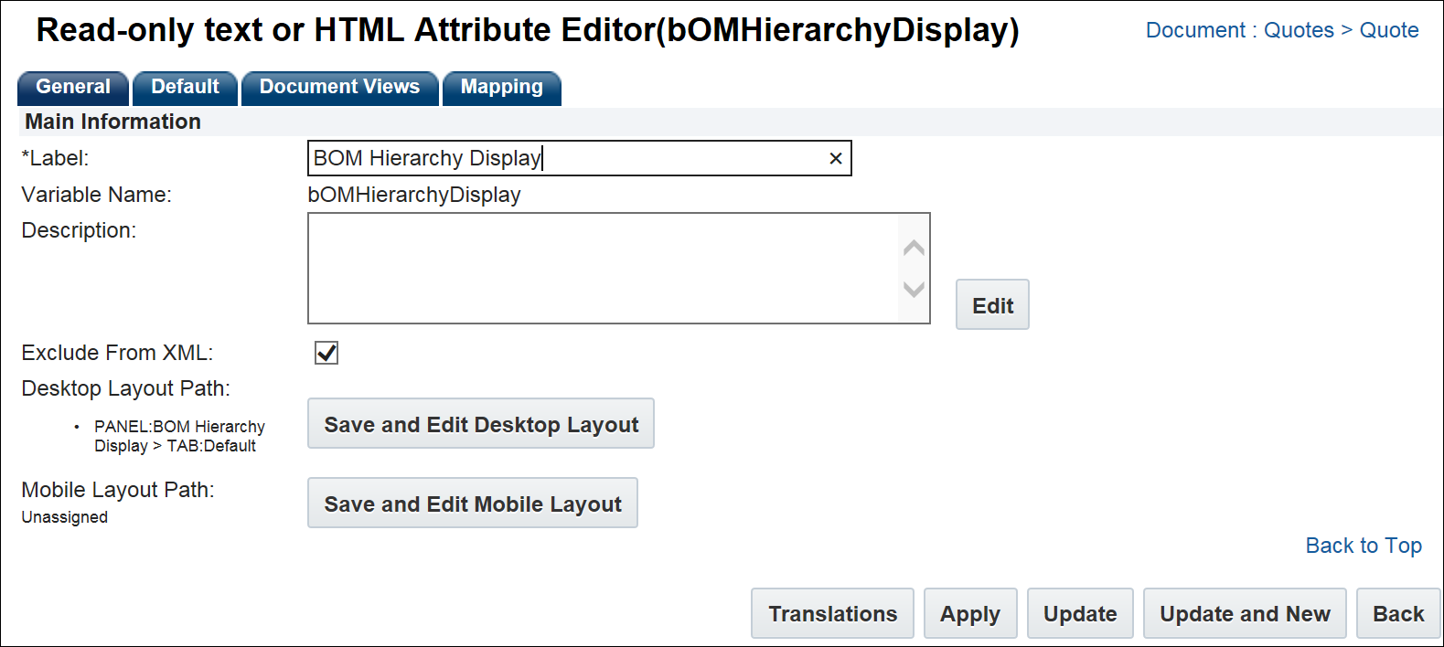 The CPQ Cloud Administration Online Help and the inline tooltips in the Layout Editor setting dialogs identify the unsupported properties. The new line item grid settings for the Alta Responsive layout are also available in Layout REST API responses. Other settings not described in this documentation may not yet be supported in CPQ Cloud 2017 R2.