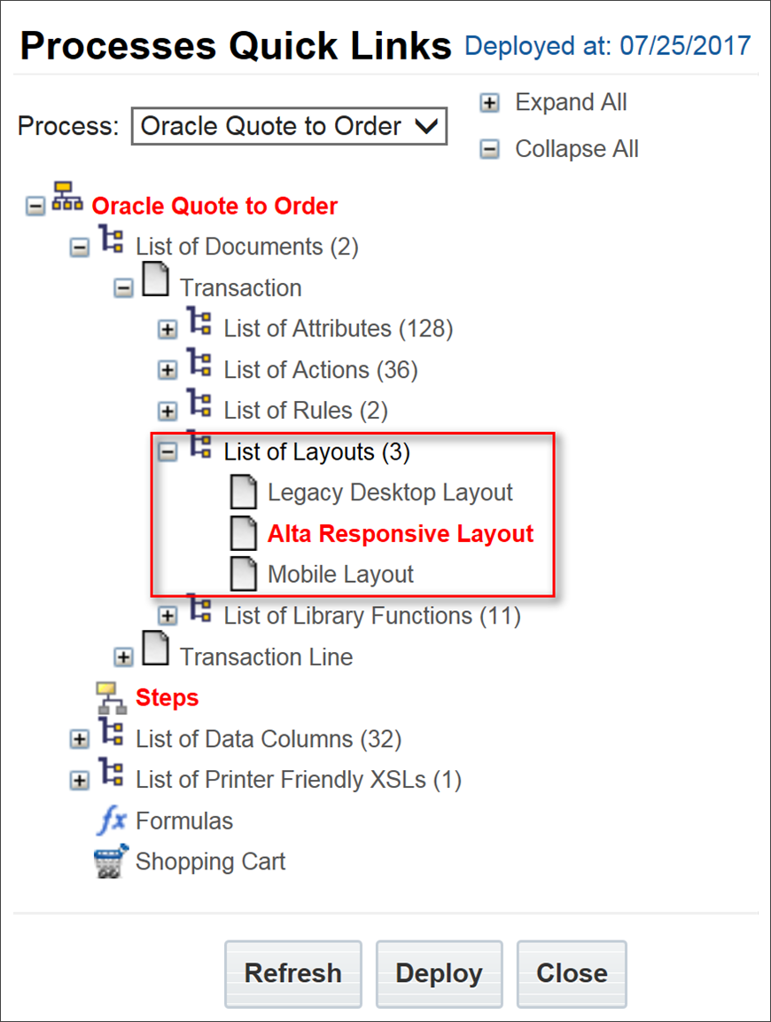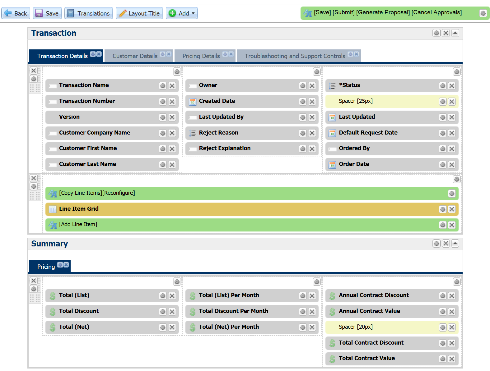 When customers enable the Alta Responsive layout, the new layout is generated based on the contents and layout of the Legacy Desktop Transaction. With the 2017 R2 release, CPQ Cloud retains most of the Transaction functionality from prior releases and users gain improvements from the new Alta layout components, including several line item table enhancements. Future releases will build upon the functionality of the new Alta UI, prioritized based on customer feedback. Full parity of functionality is the ultimate goal of the Alta UI.