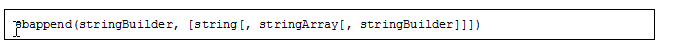 | When using the sbappend() function, the first parameter (i.e. the source stringbuilder) will have its value modified before the function is completed. Refer to the following example. |