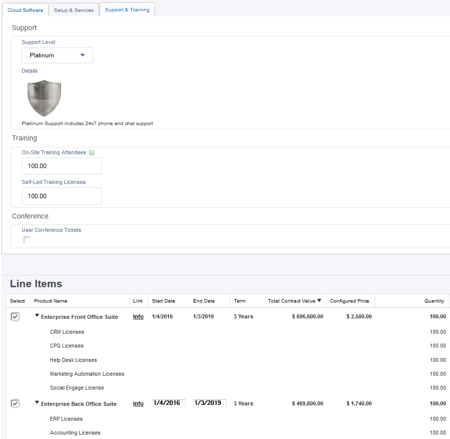 The new Line Item Editor is an engaging and modern feature that will save your sales reps time when adding discounts, modifying start dates, and editing Line Items. Sales reps can now view all Line Items directly on the Quote page and perform inline edits without having to load a new page or page through long item lists. This feature can be embedded on the Quote page or launched to full screen view when managing large lists of items.