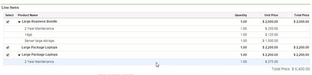 Sales users can now display or hide features on bundles by clicking the icon beside the master product. This feature allows sales reps to more quickly scan the configuration screen by allowing bundled features to be collapsed and reduce the amount of scrolling.