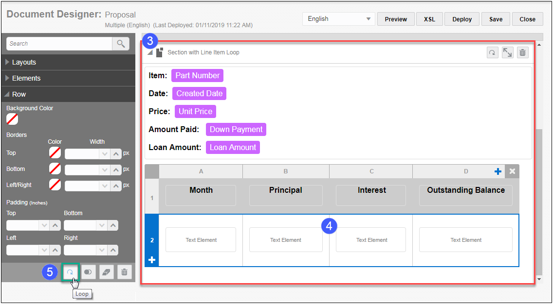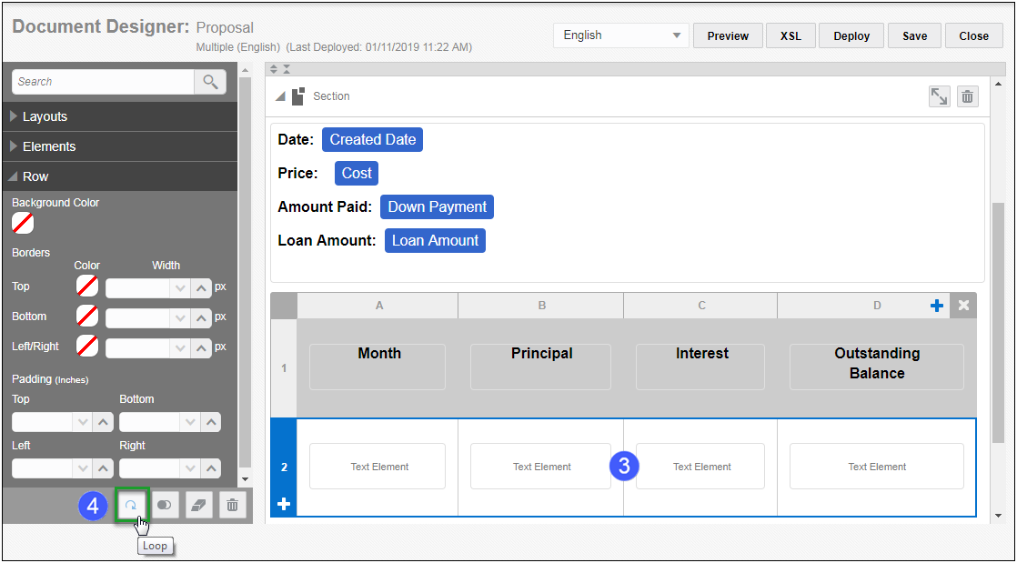 - When modifying a template, FullAccess users as well as SuperUser administrators have the XSL button available in the Admin Action Bar within the Document Designer Editor. Refer to the CPQ Cloud Online Help for details.