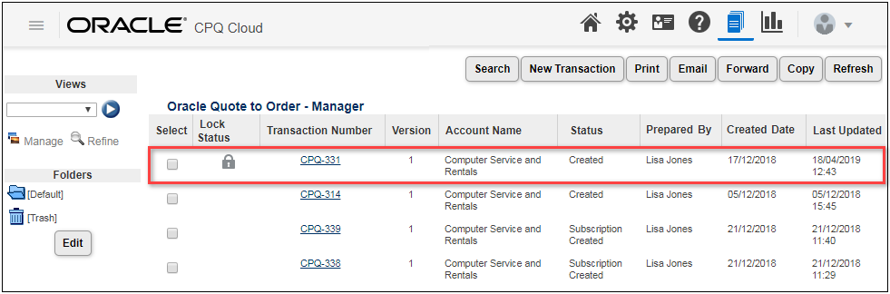 The following functionality is available in CPQ Cloud 19B: