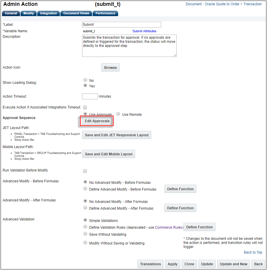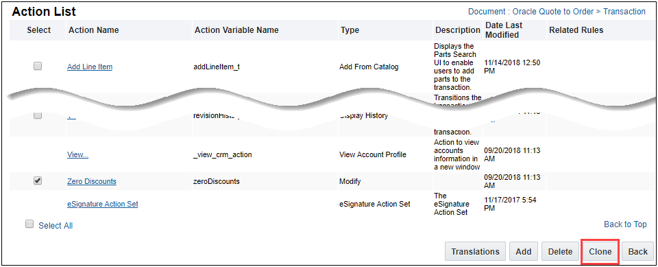 - Modify the new cloned action using the Admin Action page as desired.