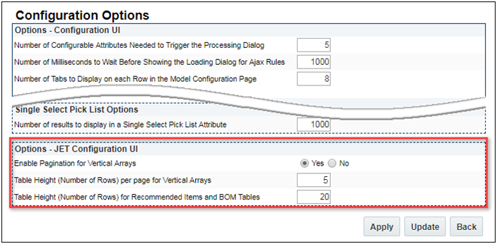 - Configuration Options for the JET Configuration UI