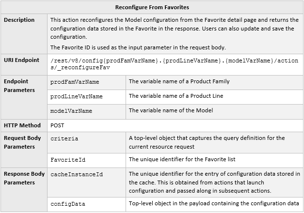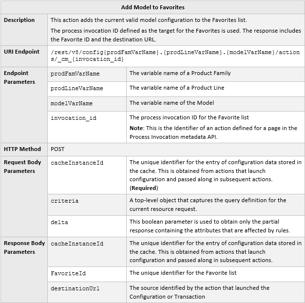 - Standard configuration actions, Process Invocations, punch-ins, and navigation to/from Commerce UIs including Update, Start Over, Next/Previous, Add to Transaction, Add to Favorites, Add to Cart, Add from Catalog, Reconfigure a model from Commerce, Reconfigure from Favorites, Resume Pending Configuration, and Search Flows.