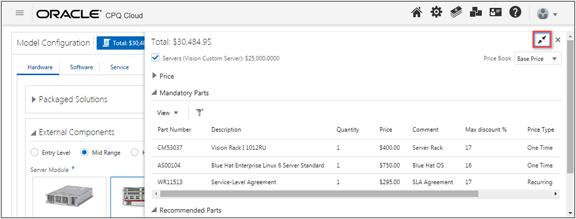 The following CPQ Cloud 19B enhancement leverages the rich interface and interactive capabilities available in CPQ Cloud to provide an intuitive selling experience.