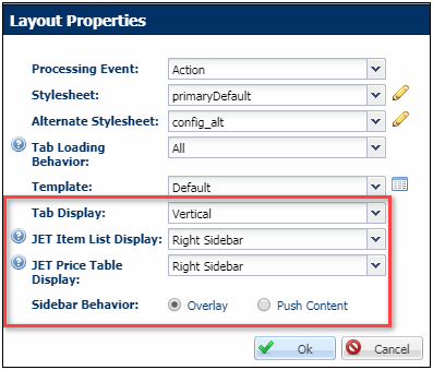 JET Configuration Layout Properties