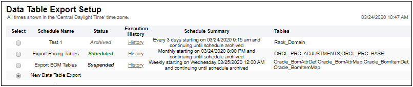 The Get List of Tasks REST API was introduced in Oracle CPQ 19D to retrieve data table status tasks. Oracle CPQ 20B adds the following categories to support migration tasks: