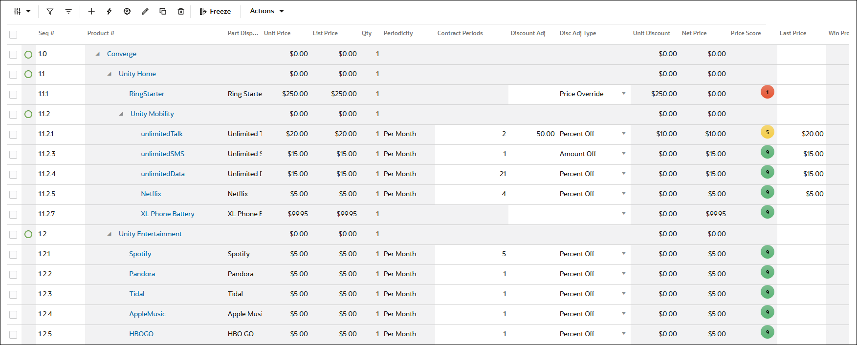 For example, in the following image shows a Line Item Grid with four unconfigured models.