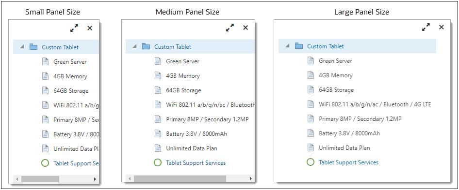 Customers can now display a small, medium, or large panel size when the System Navigation panel is displayed in the left sidebar on the Configuration UI. The medium panel size is the only option available when the System Navigation Panel is displayed in the right sidebar.