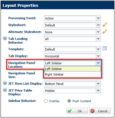 To change the location of the System Navigation Panel, select Left Sidebar or Right Sidebar from the Navigation Panel Location menu.