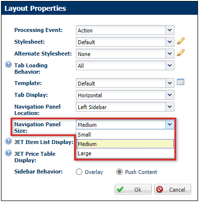 To change the size of the System Navigation Panel; select Small, Medium, or Large from the Navigation Panel Size menu.
