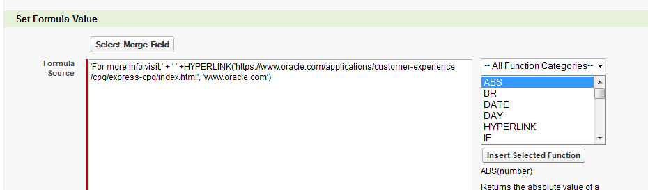 | Hyperlink Function The Hyperlink function is now available to use in text formula fields. |