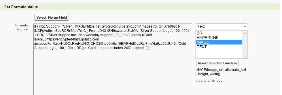| Image Function The Image function is now available to use in text formula fields. |