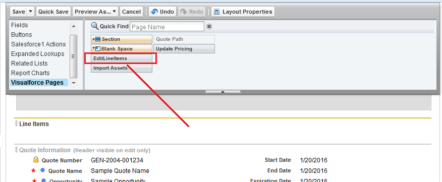 Before this feature becomes visible to your sales reps, you need to add the new Visualforce section for Line Items to the Quote Layout. This allows your users to be able to edit line item field values from the standard Quote page.