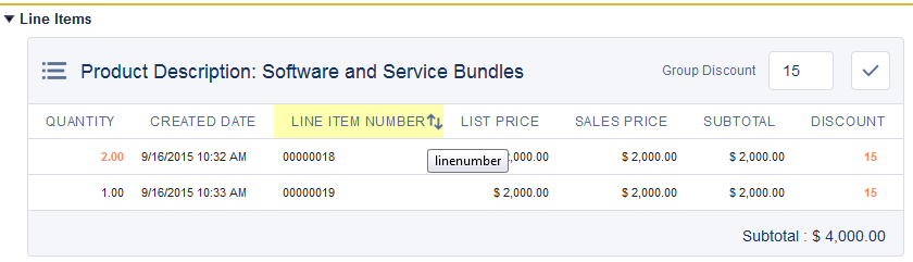 A sales user can make changes to the sorting behavior by clicking the Line Item column heading that he or she chooses to sort by.