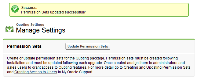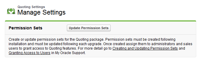 Once enabled, this feature can be used to quickly update permission sets and enable Quoting module features in subsequent releases.
