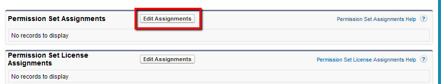 - Scroll down to the Permission Set Assignments section. Click Edit Assignments.