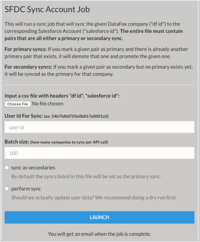 As an admin, you can use the SFDC Sync Account Job to run a job to sync company with primary and secondary accounts.