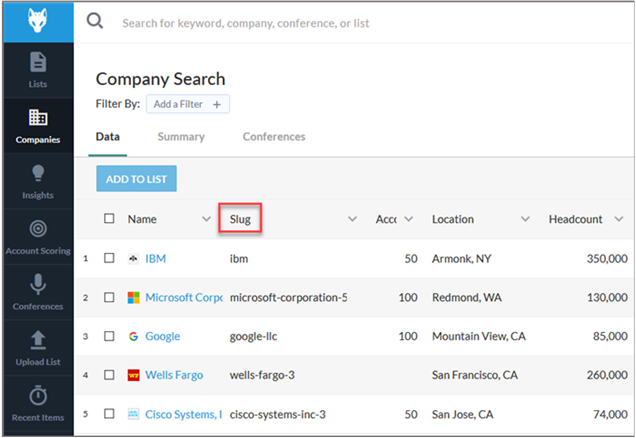 You can now use the company slug, a unique identifier, to easily find records of your company in applications where you’re importing Oracle DataFox data. You can find the company slug listed in the Slug column on the Companies page in Oracle DataFox.