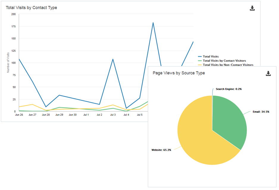 Several dashboard reports are now available in Insight, and are linked from the dashboard itself. Note that currently the Website Performance Overview dashboard is not linked. Also, there is no Insight report for the following: Contacts by Lead Score Category (Lead Score Model Comparison dashboard), Traffic Trend By Geography (Landing Page Performance dashboard).