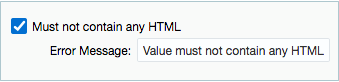 To help prevent the submission of HTML tags, a “Must not contain any HTML” validation option is now available for the following fields: