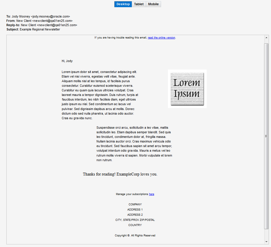NOTE: The responsive version of Engage is currently released under our Controlled Availability program. To request access to this feature, please log in to My Oracle Support and create a service request.