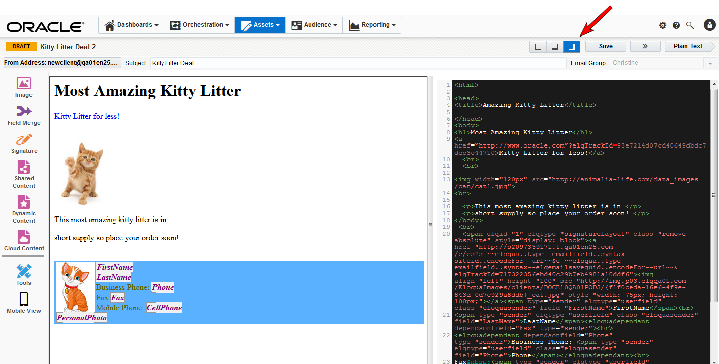 - Dynamic content, shared content, and signature layout source code, that cannot be edited, has been removed from the HTML email and landing page editors. Therefore, it is much easier to work with the cleaner, simpler source code. If you need to edit these components, please right-click the content in the design editor, and select Edit. This will open the content in its respective editor. This change is visible for assets that are newly created or resaved. Learn more