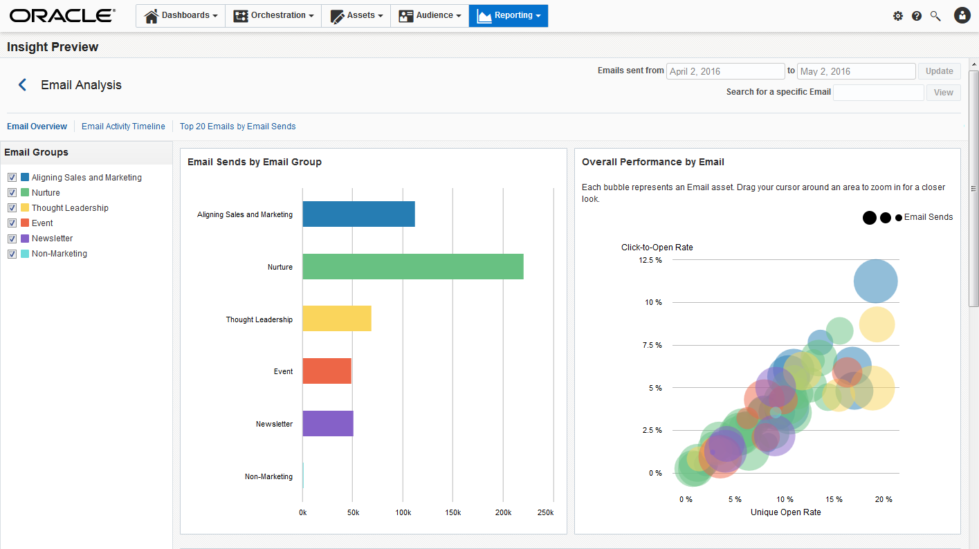 - The email visual click-through report is now optionally available. It was previously part of our controlled availability program. If you would like access to the visual click-through report, please log in to My Oracle Support and create a service request.