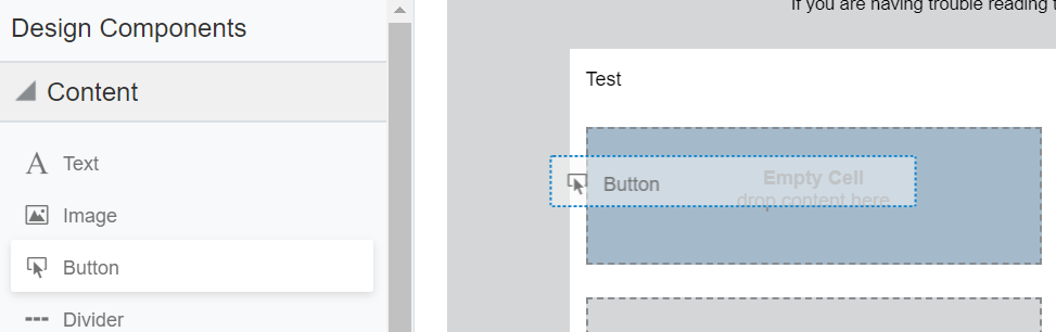 There is an updated look and feel to the email, landing page, and form Design Editors component panels. The component panel more clearly labels the different cell types, and there is a consistent design across all three design editors.