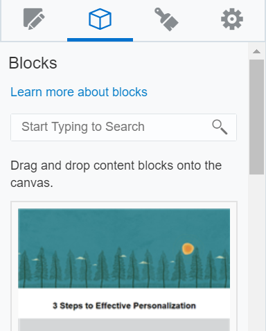 Reusable content blocks are now available in the email and landing page Design Editors. Create your own content block with pre-styled and pre-configured design elements, and reuse across multiple emails and landing pages to accelerate content creation.