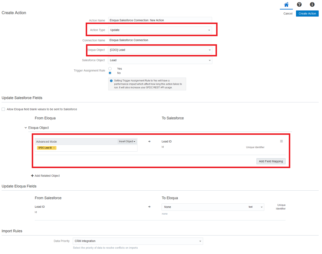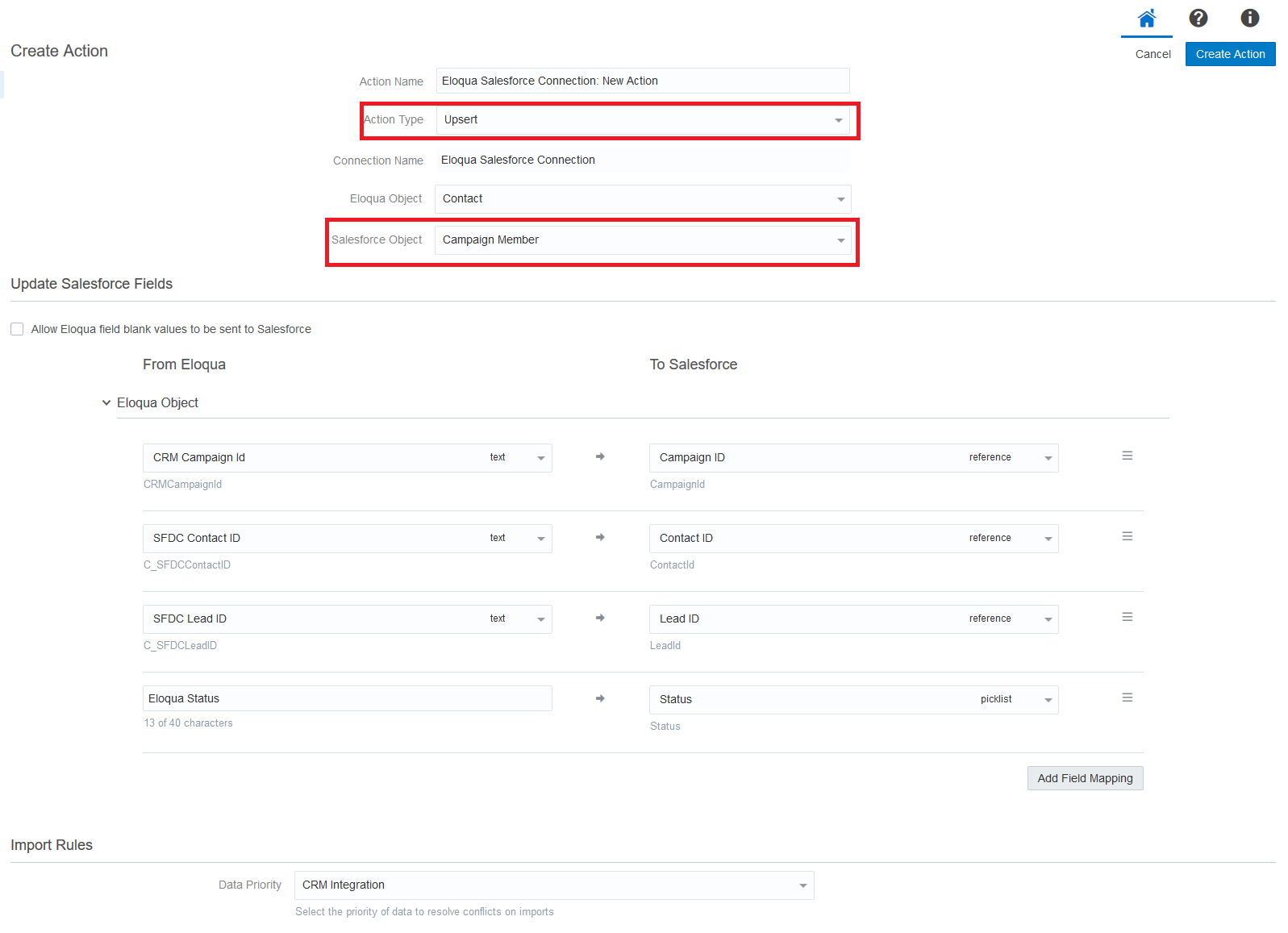 - You can now select the Upsert type of Action when mapping an Oracle Eloqua contact to a Salesforce Campaign Member.