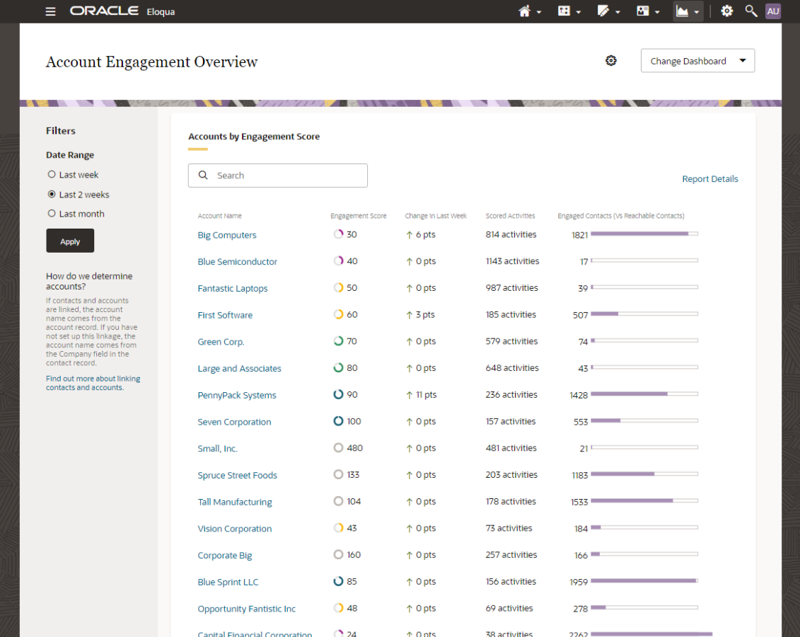 A new Account Engagement Summary report is now available. A new chart is now available on the Account Engagement Overview dashboard: Account by Engagement Score.