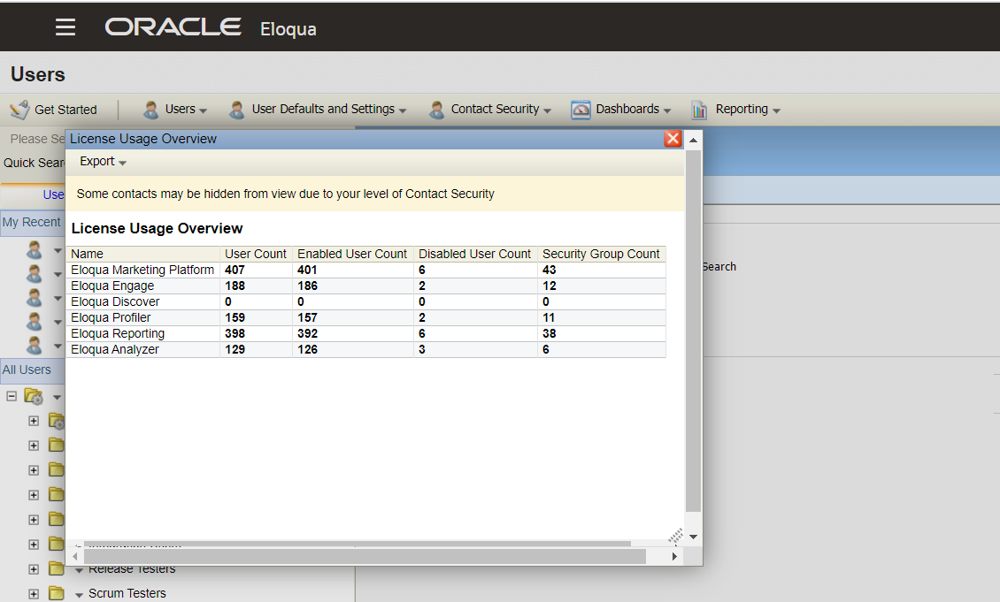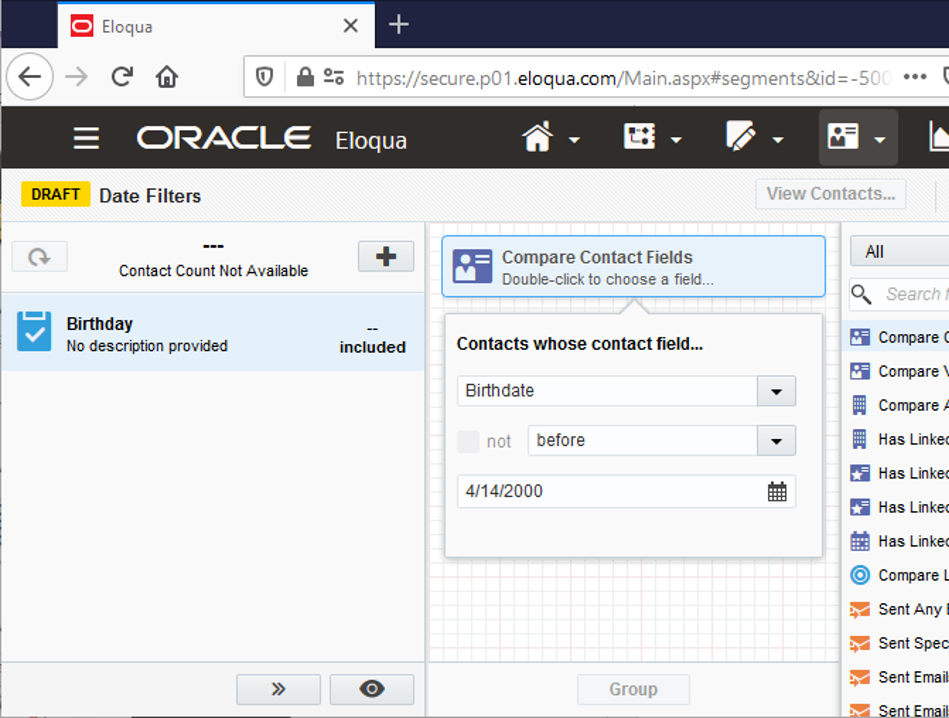 - Within a Segment, a user can access contact information for an individual contact by double-clicking or right-clicking on Open Contact on an individual contact and view the full contact information. Now, Oracle Eloqua has implemented a change so that based on a user’s Contact Interface Access setting, they will no longer see the Open Contact option if they do not have permission to do so.