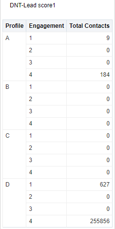 When creating a custom lead score report in Insight, Lead Scores that have no contacts will now show a 0 in the Total Contacts column.