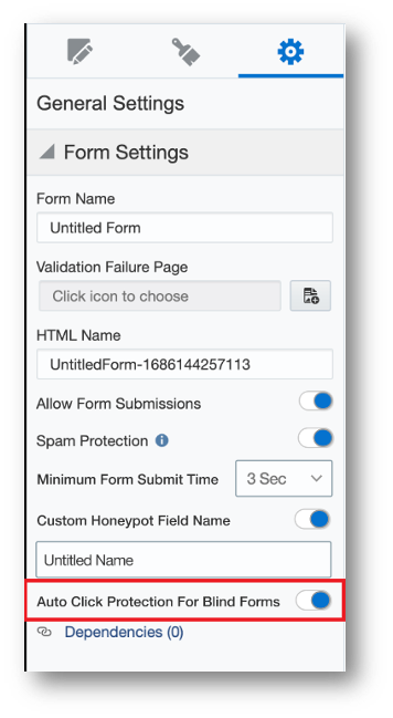 - Auto Click Protection for Blind Forms can be enabled when form spam protection is enabled for a form