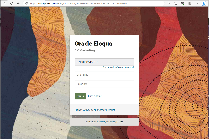 - User redirected to SSO screens or Eloqua login based on your instance set up