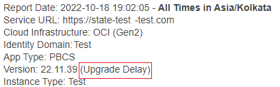 Test Environments: Oracle will apply this monthly update during the first daily maintenance that occurs at or after 22:00 UTC on Friday, November 4, 2022.