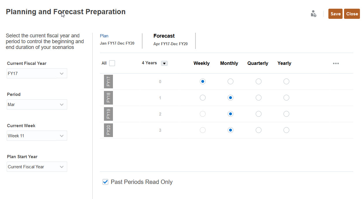 - Click the Forecast tab, and then select Past Periods Read Only.