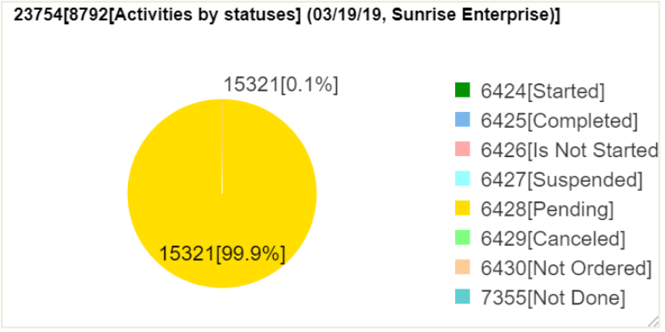 This image shows the Activities by statuses dashboard chart displaying the title format: