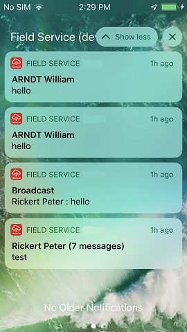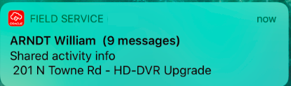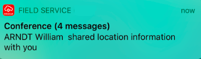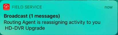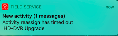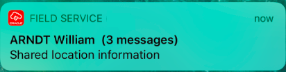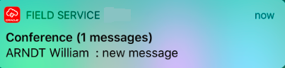 Starting with update 19D, Collaboration messages and events appear in the notification center as badges for the users of Oracle Field Service Cloud installed iOS Application.