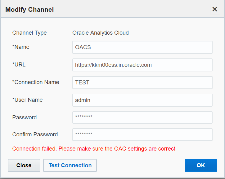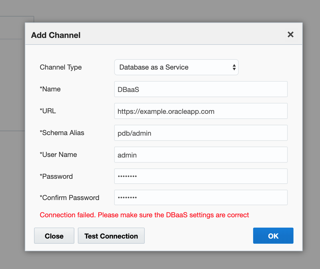 In BICS /OAC/DBaaS channels, the host must be reachable within 7 days. If the host is not reachable for more than 7 days, the system displays an error message.