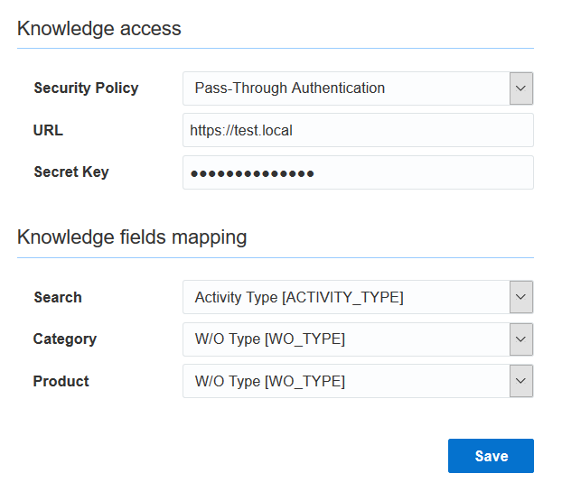 Configuration Settings for Oracle Knowledge Access in Oracle Field Service Cloud