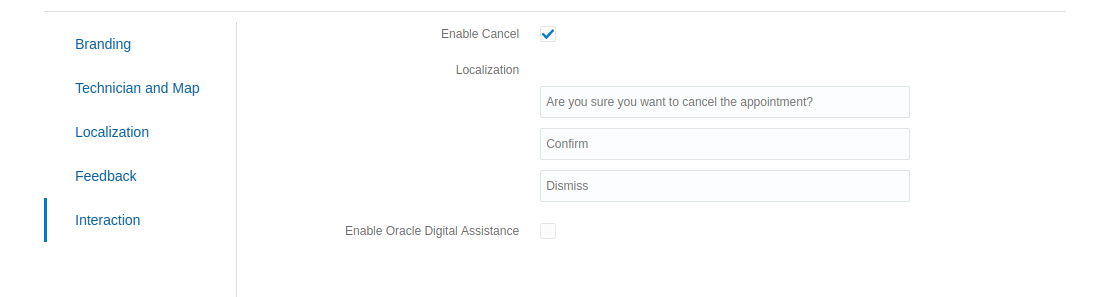 The label of one of Time Slots configured in Oracle Field Service. The time slot defines the service window for the activity. The timeSlot parameter can be set only for Activity types that have the "Support of time slots" feature enabled. If set, the value of timeSlot must contain the label of one of the timeslots that are selected in the "Available time slots" section of Activity Type configuration. |