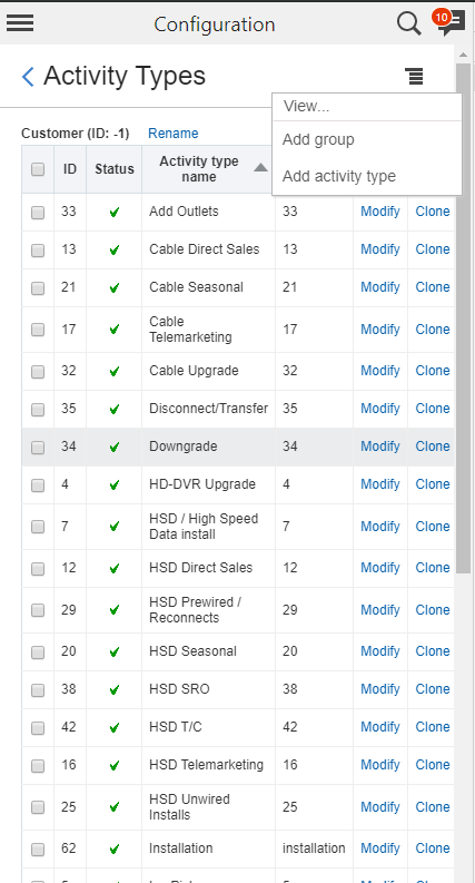 - Example: Activity Types Configuration Screen on Mobiles or Small Display Devices