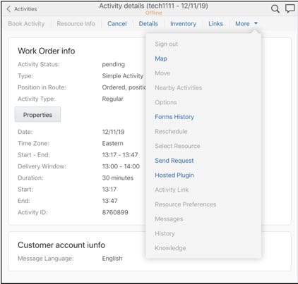 Links that work only in the online mode will be disabled within the Activity Details and Activity List screens for all users (similar to how it was in the older Mobility for Field Resources) when the user is Offline.