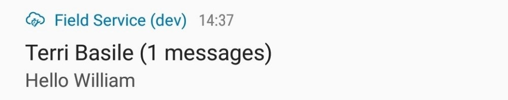 Earlier, collaboration notifications were available in native android applications as in-app notifications. Starting with 20B, collaboration notifications are available as push notifications within the Oracle Field Service Mobile for Android and iOS app. With this feature, you can receive a notification when the application is running in the background. Collaboration notification provides timely alerts of new collaboration messages for native mobile app users, whether they are using the application or not.