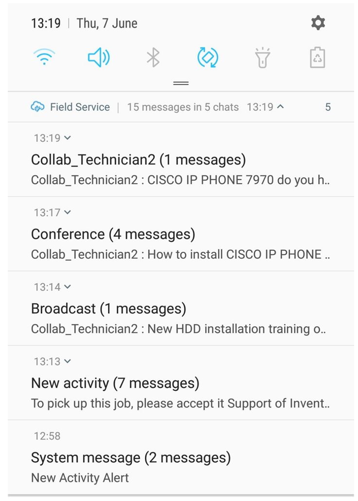 - When Oracle Field Service triggers a new collaboration event, it sends a notification to Oracle Field Service mobile app (Android OS). The notification alerts the participants of this event who are using the mobile app (Android OS) if the application is running in the background.